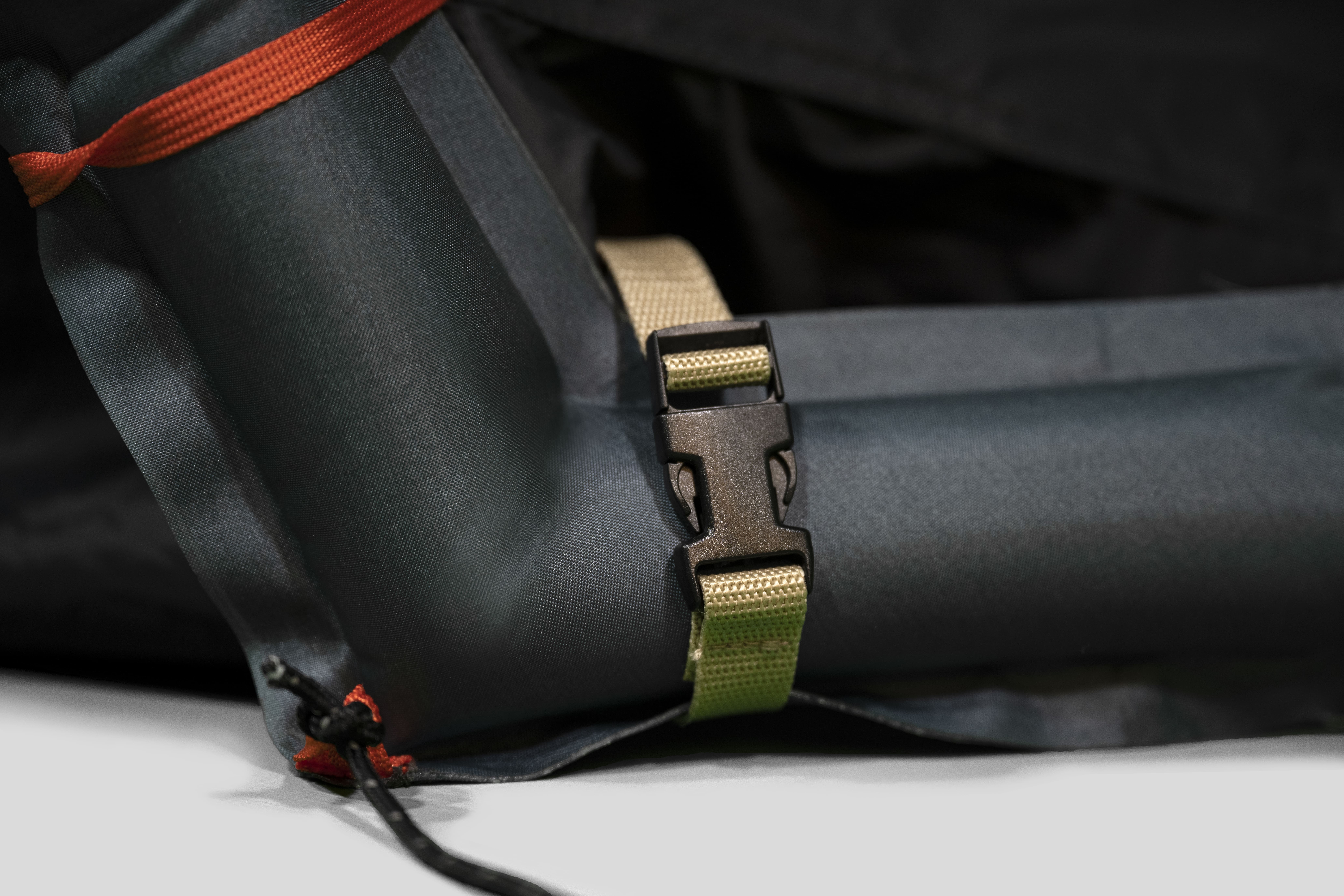 Tentagon can be fully inflated in under 2 minutes with a single fill point, making setup quick and effortless. Its one-piece design also allows for easy and fast packing. The tent’s pentagon-inspired structure, angled connections, and gravity-assisted design create a balanced relationship between the inner tent and the air frame.