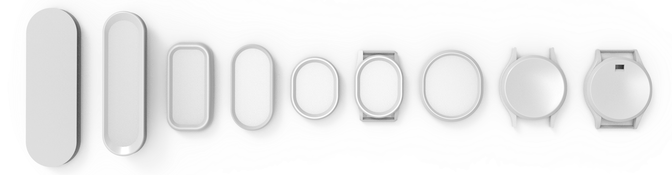 During the design process, I continuously refined the early prototypes and minimized dimensions to accommodate the new sensors and internal components, while drawing inspiration from contemporary smart wearable devices.